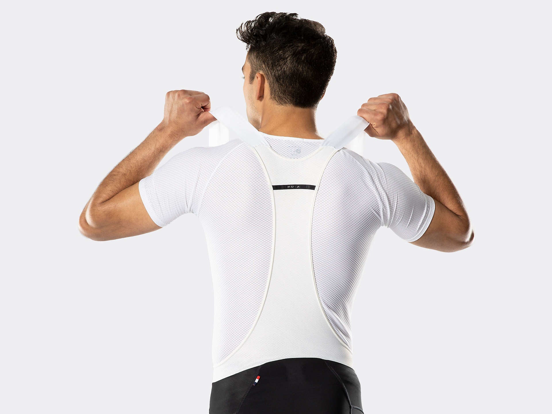 - Bib straps connect to breathable mesh back panels to keep you dry and comfortable