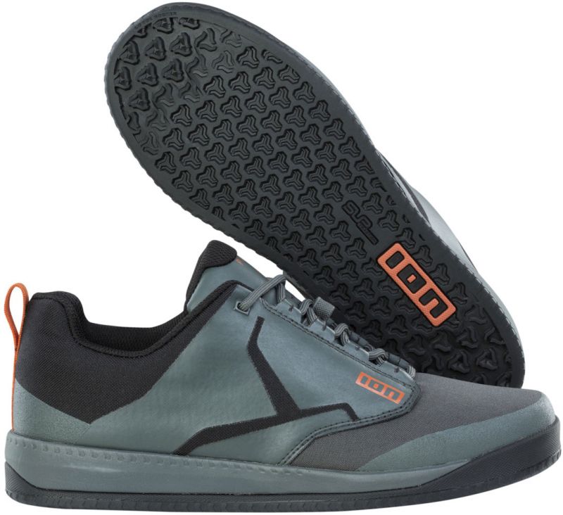 ION's Flat Pedal outsole provides great grip through a thoughtful design and superior rubber compound by SupTraction. The outsole profile features positive threads in the forefoot and heel area for perfect traction while pushing or carrying your bike. The negative profile, on the other hand, offers the perfect grip and space for the pins while riding. On top, the SUPTraction_Rubbercompund provides all the grip you need.
